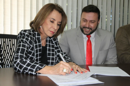 A secretária de Educação, Cultura e Esporte de Goiás, Raquel Teixeira, e o secretário de Educação de Rondônia, Waldo Alves, assinaram nesta terça-feira, dia 27, o Termo de Convênio de Cooperação Técnica para a cessão de direito de uso do código fonte da Plataforma Goiás 360, o ecossistema Sigenet e os sistemas auxiliares que o contemplam. O sistema vai otimizar informações e melhorar a qualidade dos serviços prestados aos alunos daquele Estado.
